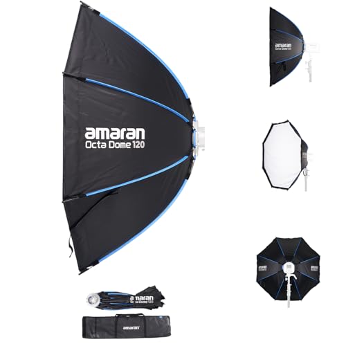 Amaran Octa Dome 120, 4ft(120cm) Foldable Octagonal Bowens Mount Softbox, Quick Setup for Large-Scale Portrait & Video Photography, Soft, Natural Light, Includes Diffusion & Control Grid, Carrying Bag