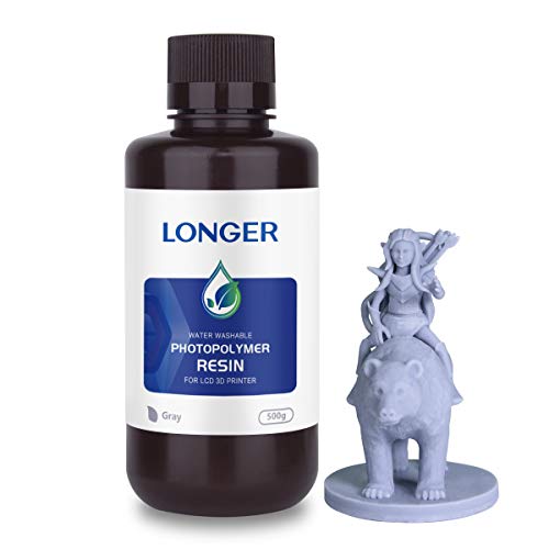 LONGER 3D Printer Resin Water Washable, 405nm Rapid Photopolymer Resin for LCD 3D Printing, High Precision & Quick Curing & Excellent Fluidity & Easy to Clean (Gray, 500g)