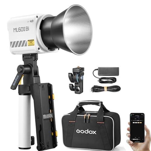 Godox ML60II Bi Portable LED Video Light - APP Control,11FX Effects,2800K-6500K Bi-Color Handheld Photography Light with AK-B01 Battery Base